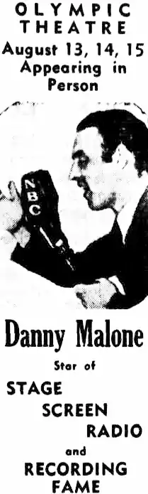 - "Irish tenor here - Danny Malone's rise to popularity". The Mercury. 7 May 1938. Retrieved 15 April 2022.