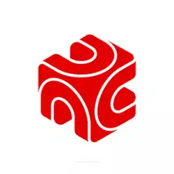 The cube-inspired red logo of DDC was designed by Ole Friis, who in 1984 won the IG Prize from the Danish Design Centre for it.[15]
