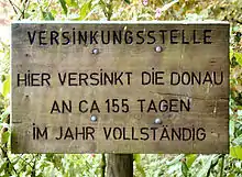 Sign in Immendingen. Translation: "Sinkhole – Here the Danube sinks dry on about 155 days per year"