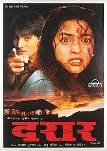 Daraar (transl. Rift) is a 1996 Indian romantic psychological thriller film directed by Abbas-Mustan starring Juhi Chawla, Rishi Kapoor and Arbaaz Khan in his film debut.[1] Khan received the Filmfare Best Villain Award for his portrayal as a possessive husband. Upon release, the film received mixed to positive reviews, especially for Arbaaz's portrayal as a possessive and abusive husband. Despite much hype, the film was a box office flop, mainly due to similar films, Yaarana and Agni Sakshi that were also inspired by the 1991 American psychological thriller film Sleeping with the Enemy, much like this film, while only the latter (Agni Sakshi) was successful.[2]