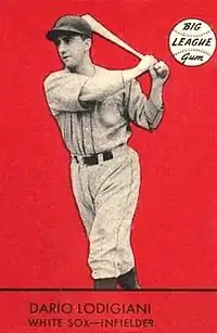 Dario Antonio Lodigiani [Lodi] (June 6, 1916 – February 10, 2008) was an infielder in Major League Baseball who played for two different teams between 1938 and 1946. Listed at 5'8", 150 lb., he batted and threw right-handed. He was born in San Francisco, California. Lodigiani enjoyed a 17-year baseball career (1935–1954), playing parts of six seasons in the majors (1938–42, 1946) and 14 in the minor leagues (1935–40; 1947–54), losing three years while serving in the military (1943–45).