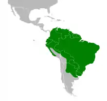 It is found in Argentina, Bolivia, Brazil, Colombia, Ecuador, French Guiana, Guyana, Paraguay, Peru, Suriname, Trinidad and Tobago, Uruguay and Venezuela. It has occurred as a vagrant in northern Chile, the Falkland Islands, Grenada, and Florida.