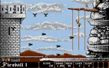 Dark Castle may be the first game to use WASD keys and mouse for control.[1] The trajectory and launching of rocks and fireballs are controlled via mouse movement and clicks respectively, while the character's locomotion is controlled via key strokes.