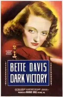 Dark Victory is a 1939 American melodrama film directed by Edmund Goulding, starring Bette Davis, and featuring George Brent, Humphrey Bogart, Geraldine Fitzgerald, Ronald Reagan, Henry Travers, and Cora Witherspoon. The screenplay by Casey Robinson was based on the 1934 play of the same title by George Brewer and Bertram Bloch, starring Tallulah Bankhead.