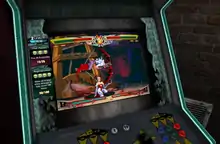 Darkstalkers Resurrection features online play and other new enhancements in the same respect to Iron Galaxy Studios' previous Capcom arcade re-releases Street Fighter III: Third Strike Online Edition and Marvel vs. Capcom Origins. The game utilizes the GGPO netcode to provide smooth online gameplay.[1] Matchmaking follows in the footsteps of Iron Galaxy Studios' earlier products and introduces additional options such as region matching and ping display.[5] Aside from the standard ranked and player matches, Resurrection also includes an online tournament mode.[6] The game adds HD filtering with multiple viewing options, YouTube replay uploads, eight-player lobbies and a tutorial mode which provides in-depth tips to the mechanics of the game.[4] Players who complete in-game challenges receive points which can be redeemed to unlock bonus content via the "Vault" system, including custom artwork by Stanley "Artgerm" Lau, concept art, videos, and other rewards.[4][7]