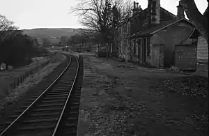 The station consisted of a single platform without a passing loop, a four-bedroom stone house for the station master and his family, with an adjoining booking office and waiting room. For some reason the design of the station was far simpler than the buildings designed by the NER Architect Thomas Prosser for Ripley, Birstwith, Dacre and Pateley Bridge. At a later date a separate ladies' waiting room and WC, and an outside gents' urinal and WC, were added at the Pateley Bridge end of the buildings. There were two small timber buildings on the platform: a lamp room, and a goods warehouse, essentially a lock-up shed. In the yard were two sidings, reached via a single connection from the main running line. A small three-sided timber shelter on the platform provided cover for the 6-lever signal frame, which operated the connection to the goods yard and the running signals. There was a 5-ton hand crane and a short timber loading stage, but no facilities for coal (unlike many NER stations). There was also a platelayers' hut and a wash house for the station master and family. At the exit from the yard there was a stone-built weigh house with a 12-ton weighing machine. At the Birstwith end of the yard was a pair of brick semi-detached cottages of a standard NER design.[7][8]