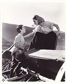In 1939, he was cast in 20th Century Fox's film adaption of John Steinbeck's best-selling novel from 1939, The Grapes of Wrath, starring Henry Fonda and directed by John Ford. He portrayed Winfield Joad, the youngest member of a family trying to cope with the hardships of the Great Depression.[7] The film was a critical and commercial success, with Ford winning an Academy Award for Best Director, while actress Jane Darwell won for Best Supporting Actress.[8][9] In 1941, Hickman played a reform-school juvenile delinquent in Men of Boys Town, "almost running away [with his role] right under [co-star] Mickey Rooney's nose", said one review.[10] Another notable role during this time included the wartime melodrama The Human Comedy, where he played a mentally slow child. Hickman made a featured appearance as Frank in the 1942 Our Gang comedy short "Going to Press".[11] In 1944, he again played the bad-boy antagonist, cast opposite Jimmy Lydon's goody two-shoes character in the film Henry Aldrich, Boy Scout.[10]