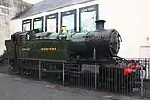Static display | GWR lined green, 'Great Western' Lettering | Built in 1929 at Swindon Works, 4920 was first moved to Buckfastleigh from Woodham Brothers, Barry in June 1976 where restoration work was to take place. Following restoration and running in on the SDR the loco was transferred by rail to Paignton and entered service in 1988 on the then-named Torbay Steam Railway. Following the expiry of the engine's boiler ticket 4920 was returned to the South Devon Railway and placed into storage while awaiting a space in the workshop. It was sold in December 2020 and moved to West Coast Railways Carnforth. The engine has been cosmetically restored and shipped to Japan in January 2022 to be displayed at a new Harry Potter theme park and renamed Hogwarts Castle.[22] |