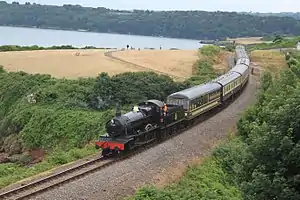 The Dartmouth Steam Railway, formerly known as the Paignton and Dartmouth Steam Railway, is a 6.7-mile (10.8 km) heritage railway on the former Great Western Railway branch line between Paignton and Kingswear in Devon, England. Much of the railway's business is from summer tourists from the resorts of Torbay, who travel to Kingswear, where the Dartmouth Passenger Ferry takes them across the River Dart to Dartmouth.