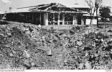 Despite being clearly marked by red crosses painted on the roof, Ward 1 and a number of nearby staff residences at the new hospital were damaged when eight bombs landed in the vicinity at around 10:05 am during the first Japanese air raids on the city on 19 February 1942.[2][3][5] Despite the damage, the hospital received the majority of civilian casualties for treatment following the raid. Shortly afterwards, the hospital was placed under the Army's control and the remaining civilian nursing staff were evacuated interstate.[3]