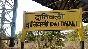 Dativali is a railway station on the Vasai Road–Diva–Panvel–Roha route of the Central Line, of the Mumbai Suburban Railway network.