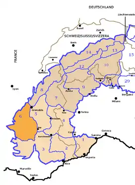 | Borders on | Provence Alps and Prealps, Dauphiné Alps and Savoy Prealps |