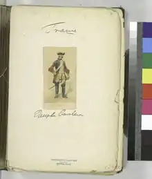 In 1757, a new uniform ordnance was published in which the regiment was now 14th in precedence, with the Queen's just before and Dauphin's Foreign cavalry regiment after. The new uniform consisted of the following: black tricorne with white trim and a white bourbon cockade. Royal blue coat and reverse with gold buttons, red turnbacks and facings, tan small clothes and trousers, dark blue saddles, and royal blue epaulettes.[10][11]