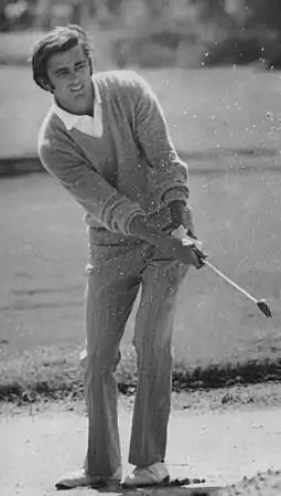 Hill was known for his quick wit and biting sarcasm, and was sometimes referred to as "the Don Rickles of the golf tour".[1] He frequently led the tour in fines and was once suspended for two months after he deliberately broke his putter on national television.[2] At the 1966 Thunderbird Classic, Hill signed his second round scorecard that included a score of 108 on the 18th hole.[3] Hill played in the acrimonious 1969 Ryder Cup that ended in a 16-16 tie when Jack Nicklaus made his famous "concession" of a short but missable putt to Tony Jacklin on the 18th green in the final match.