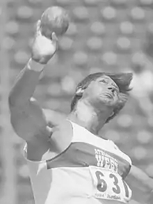 David Lester Laut (December 21, 1956 – August 27, 2009) was an American shot putter. He was born in Findlay, Ohio, and grew up in Oxnard, California. Laut attended Art Haycox Elementary School, E. O. Green Junior High School, Santa Clara High School, Moorpark College[1] (all in Ventura County), along with San Jose City College and UCLA,[2] where he was a two-time NCAA champion and ranked No. 1 shot putter in the United States.[3]