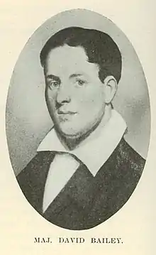 David Bailey (1801–died ) was an American militia officer and abolitionist in the Illinois Militia who fought during the War of 1812 and the Black Hawk War. Most notably, he served at the Battle of Stillman's Run, where he and Lt. Col. Major Isaiah Stillman were defeated by Black Hawk's British Band at Stillman Creek in present-day Ogle County, Illinois, on May 14, 1832.