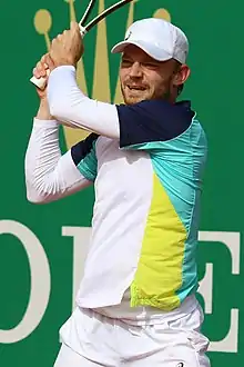 Seeded 11th at the Monte-Carlo Masters, his first clay-court tournament of the season, Goffin reached the quarterfinals beating Marin Čilić,[44] qualifier Marco Cecchinato,[45] and fifth seed Alexander Zverev.[46] He was eliminated in his quarterfinal match by Dan Evans, who had upset world number one Novak Djokovic in the previous round.[47] Seeded eighth at the Barcelona Open, he retired during his third-round match against Cameron Norrie due to a leg injury.[48] He returned from injury in June at the Italian Open. Seeded 12th, he was beaten in the second round by qualifier Federico Delbonis. Seeded fourth in Lyon, he lost in the second round to Aljaž Bedene.[49] Seeded 13th at the French Open, he was defeated in the first round by Lorenzo Musetti.[50]