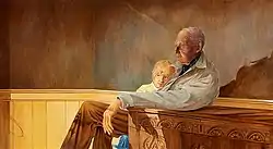 In 1967, Hanna moved with his family to Bristol, Maine. The family first resided in the Pemaquid Point Lighthouse and later in a house in the village of Round Pond.[3] A large body of work between 1968 and 1975 includes paintings and drawings such as Two Different Horizons (1971), Night Watch (1971), and Final Farewell (1975) depicting Captain Alexander Breede (d. 1971), a retired seaman.[1][7]