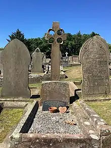 The headstone on Dawsey's grave is that of Manx Runic Cross from a design by Manx artist Archibald Knox;[26] the work being carried out by Thomas Quayle & Sons, Douglas, Isle of Man.[28]