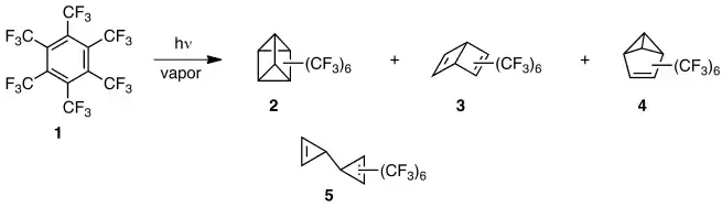 - Lemal, D. M.; Dunlap, L. H. (1972-09-01). "Kinetics and thermodynamics of (CCF3)6 valence isomer interconversions". Journal of the American Chemical Society. 94 (18): 6562–6564. doi:10.1021/ja00773a061. ISSN 0002-7863.