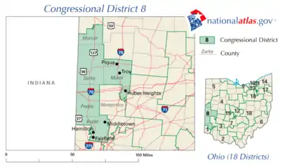 Districts 1, 15 and 16 changed party (from Republican to Democratic), although CQ Politics had forecasted districts 1, 2, 14, 15, 16 and 18 to be at some risk for the incumbent party. District 15 was not decided until December 8, 2008.[1] As of 2021, this is the last time that Democrats won a majority of congressional districts from Ohio, as well as the last time they won the House popular vote in the state.