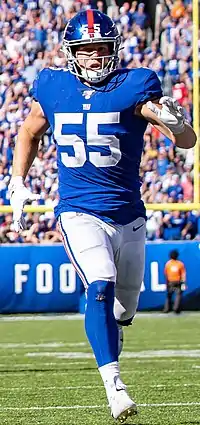 On September 2, 2019, Mayo was signed by the New York Giants.[10] In Week 5 against the New England Patriots, Mayo recorded a team high 13 tackles and a sack.[11] On March 16, 2020, Mayo signed a three-year contract extension with the team.[12] On September 6, 2020, he was placed on injured reserve with a torn meniscus before being activated on October 16, 2020.[13][14] Mayo was released on March 4, 2021.[15]