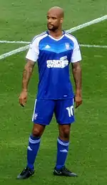 McGoldrick agreed to sign a two-year deal with Ipswich in July 2013.[47] He formed at a strong partnership with Daryl Murphy at Portman Road during the 2013–14 season, as the pair netted 18 goals in 22 games in the first half of the campaign. He was named as Championship Player of the Month for September 2013 after scoring braces against Middlesbrough and Brighton & Hove Albion.[48] However, he was struck down for ten weeks with a partial tear of the medial ligament in his right knee in mid-February.[49] He finished the season as Ipswich's top goalscorer, scoring 16 goals in 34 appearances in all competitions. He was voted Ipswich's Players' Player of the Year at the end of the campaign.[50]