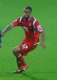 After undergoing a shoulder operation in the 2010–11 pre-season, he was out of action until late September.[25] He recovered to post six goals that season, and also pushed Forest back into the play-off picture when he came off the bench to score twice past Burnley on 12 April.[26] However, he could not prevent his team from exiting the play-offs at the semi-final stage, after a 3–1 to eventual play-off winners Swansea City.[27]