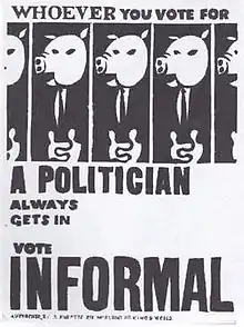 In Sydney during the 1960s, he associated with the Sydney Push and developed as a painter, photographer and 8mm filmmaker. Prior to separation, he was married, with three children. He was employed by the Australian Broadcasting Commission in photographic positions and engaging privately in experimental film and video, and other artworks. It was during this time that he made the abstract videographic film Mad Mesh,[6] and the controversial electoral poster featuring "a continuum of pigs (inspired by Orwell's Animal Farm)" with the slogan Whoever you vote for, a politician always gets in.[7] His film, A Sketch on Abigayl's Belly which showed shots of a pregnant woman caused controversy when it was banned by the Commonwealth Film Censor in 1968 when the print returned from the International Short Film Festival Oberhausen. In 1970 Don Chipp, the Minister for Customs and Excise, in a conscious public gesture, overturned the banning of the film.[8]