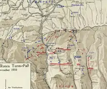 At the onset of the Romanian Campaign of World War I, Praporgescu was named commander of the 20th Infantry Division, which was part of the Romanian 1st Army, under the command of General Ioan Culcer.[2] The campaign started on 27 August 1916 with the Battle of Transylvania. After the Romanian forces launched an offensive towards Sibiu and defeated the defending Austro-Hungarian troops, a counter-offensive was launched by the 9th German Army under the command of Erich von Falkenhayn. From 26–29 September Praporgescu's troops, including those of the 23rd Division under the command of Colonel Traian Moșoiu, fought tenaciously in the Olt and Topolog valleys, blocking an attempted breakthrough by the Bavarian Alpenkorps.