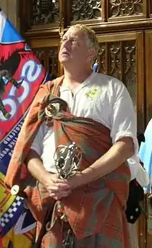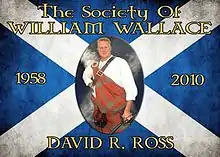 David R. Ross was, until the time of his death, the elected convener of The Society of William Wallace, a non-political organisation aimed to uphold the memory of the Scottish folk hero.[16] He was a key speaker at the yearly events organised by the society, specifically the William Wallace Memorial Days held in Elderslie (allegedly Wallace's birthplace) and in Robroyston, where Wallace was captured.
