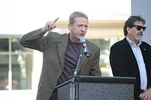 Rolf echoed similar sentiments in a 2013 article for Democracy, writing: "If we invest time, energy, and capital into rigorous research, development, testing, and scaling up of new strategies and organizations that put workers' interests at the heart of our democracy, we can rebuild the American Dream. Now is a time for creativity and courage, risk and experimentation."[55] In 2013, The Seattle Times wrote that Rolf's mission is to persuade the more traditional leaders within the movement "to accept that innovation is your new religion".[7] He advocates for the use of social networking services by unions in order to engage young people,[7] and believes that, like corporations, unions must invest in development, entrepreneurship and research in order to be successful in their efforts.[55] Rolf believes "a completely new and disruptive force" is necessary to help the middle class, which will require "bold moral and economic choices".[55][7] He criticizes corporations that outsource or subcontract workers on a low-wage, part-time or temporary basis in order to avoid paying for the benefits required for full-time employees.[55] Rolf has expressed concern about increased student loan debt, cost of housing increases that are greater than family income increases, and payroll tax increases during a time of simultaneous corporate tax decreases, and he is critical of trickle-down economics. He advocates for a $15-per-hour minimum wage to help address these issues.[6][57] Rolf believes that minimum wage increases help local and small businesses.[58][59][60]