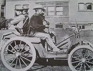 Davidson designed the military gun carriage vehicle[3] and ordered it to be built from the Peoria Rubber and Manufacturing Company.[4] He used patents of Charles Duryea, a well-known automobile manufacturer of the time.[5] Charles Duryea, with his automobile manufacturing company, put it into an automobile-style patent which he filed for on May 16, 1898. It was finally approved as Patent No. 653,224 on July 10, 1900. The military gun carriage gasoline-driven vehicle was built on a Duryea Automobile Company standard production automobile chassis that was converted for military purposes.[6] The first ones cost $1,500.[7]