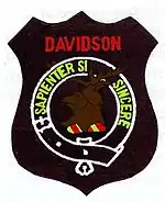 While at Killarney Heights High School in 1972, the parents of the first students were granted permission by the Lairds of the Clan Davidson to use the crest, shield and tartan of Clan Davidson of Tulloch.[2] The distinctive tartan colours and the stag's head were incorporated in the badge, and are still used as part of the uniform. The Clan Davidson and subsequently Davidson High Motto - 'Sapienter si Sincere' - means 'Wisely if Sincerely' or alternately, 'with wisdom if with sincerity'.[2]