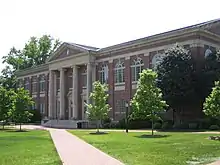 An institution of higher learning of The Presbyterian Church (USA),[14] Davidson College was founded in 1837 by The Concord Presbytery after purchasing 469 acres (1.90 km2) of land from William Lee Davidson II. He was the son of Revolutionary War commander Brigadier General William Lee Davidson, for whom the college is named.[15] Church records show a meeting on May 13, 1835, among subsequent meetings, by members of the Concord Presbytery making plans to purchase and perform initial construction on the land, with land payments starting Jan. 1 of the following year. The first students graduated from Davidson in 1840 and received diplomas with the newly created college seal designed by Peter Stuart Ney, who is believed by some to be Napoleon's Marshal Ney.[16]