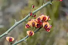 This species of pea grows in heath, woodland or mallee from the wheatbelt and Goldfields–Esperance regions of Western Australia through the Murray Mallee districts of South Australia, almost as far east as the Victorian border.[2][3]