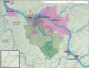 Davis Creek is a tributary of the Kanawha River, 9.4 miles (15.1 km) long,[3] in West Virginia in the United States. Via the Kanawha and Ohio rivers, it is part of the watershed of the Mississippi River, draining an area of 47.1 square miles (122 km2)[4] on the unglaciated portion of the Allegheny Plateau, in the Charleston metropolitan area.