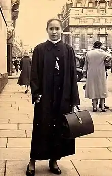 In 1951 when she was 32, Kyan continued her education at the special class of the University of Yangon in which she graduated within three years, and completed her master's degree in 1959. She joined as a part-time tutor at the Department of English Language and Literature of Yangon University for two years while she was a master's candidate. In 1956, she was appointed as a research officer in Burma Historical Commission.[7] Kyan went to SOAS University of London to collect the Burmese historical documents in the following year. In 1959, with Daw Yi Yi, she went to the Victoria and Albert Museum and copied microfilms of rare parabaiks and the collections of Henry Burney and Edward Bosc Sladen.[8] In 1963, she was promoted to a senior research officer.[7]