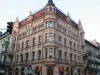 Dawid Lande was one of the city's most popular architects of the time, known for his projects in Łódź and Warsaw. He was best known for the Russian National Bank in Łódź, Dawid Sendrowicz’ brick house, Hotel Grand, Leon Rappaport's villa and Mieczysław Pinkus’ brick house. He died in Karlovy Vary, aged 60.[3]