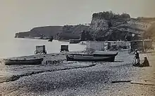 In 1830, Isambard Kingdom Brunel designed an atmospheric railway, which operated on a pneumatic principle,[14] using a 15-inch iron tube. One of the pumping stations was in this town. The line ran right along the seafront, but Brunel ensured that the line was carried across the mouth of the stream on a small granite viaduct, leaving access to the beach.[10]