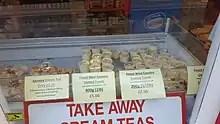 Dawlish railway station, in the town centre next to the beach, offers trains to most stations in Devon and to London, Birmingham, Manchester and further afield. The line includes one of the memorable stretches of British track for its natural environment, but at high cost, as a constant battle with sea erosion makes it one of the dearest lines to maintain.[17][18][19] A storm in 1974 washed away much of the station's down platform.[20][21] In the UK storms of January–February 2014 waves brought down the sea wall and washed away a section of line, leaving the permanent way suspended.[22]