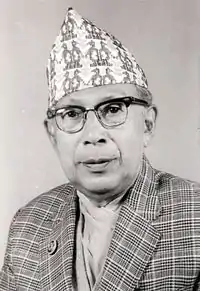 He has also been decorated with the Order of Gorkha Dakshina Bahu, Second Class (previously Fourth Class), and the Order of Tri Shakti Patta by the king of Nepal.[13] In 1963, he was named a member of the Privy Council (Raj Sabha).[14] President of Nepal Ram Baran Yadav issued a message on the occasion of the centenary of his birth saying that Kansakar's philanthropic services would always be remembered.[15]