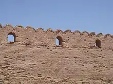The construction of the structure is attributed to Ardashir-e Bābakān (Ardashir I) and so it has also been called Kardashir (done by Ardashir).[12] Ya'qubi attributes it to Anushiruwān (Khosrow I). In History of Qom by Hasan ibn Mohammad Qomi, it is attributed to Anushiruwān but it can be implied by the text that he did not build the initial structure, and probably the structure was built in the beginning of Sasanian era (Ardashir I) and it was rebuilt in the Anushiruwān era.[1] As Qomi mentions, the king of Rûm sent a group of Amalek, which were the survivors of the ʿĀd tribe and had enormous bodies, to Anushiruwān to serve him and he appointed them to construct this structure.[5]