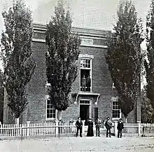 In 1861, the town officially adopted the name "Dayton", after John Day, a local surveyor who was later elected Surveyor General of Nevada in 1868, 1870, and 1874.[3] On November 29, 1861, Dayton became the governmental seat for Lyon County.[4] Because of the availability of water from the Carson River, it soon became the first major milling center of the Comstock, and grew rapidly—from 78 residents in 1860 to 2,500 in 1865.[5] Its 1864 courthouse was one of the first in Nevada.