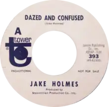 Jake Holmes began his music career in the early 1960s, and recorded and performed with several different groups.[2] He was influenced by psychedelic rock and groups such as the Byrds and the Blues Project, and wrote "Dazed and Confused" in a similar style with a blues influence.[3] In spring of 1967, he recorded the song for his debut solo album "The Above Ground Sound" of Jake Holmes, as a trio of acoustic guitar, electric guitar, and bass.[1] On July 10, it was released on the Tower Records label.[2]