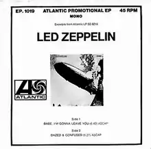 As of 2002, the 1969 promotional EP using "Babe I'm Gonna Leave You" as the A-side track and "Dazed and Confused" as B-side had been one of top ten Led Zeppelin music collectibles.[50] A collector Rick Barrett, dedicated to his Led Zeppelin memorabilia, sold several copies of the promo EP for US$300–500 each, "depending on the condition of the sleeve and of the record itself," said Barrett.[51]