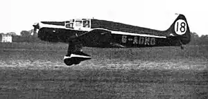 On 7 September 1935, it came in fourth in the King's Cup Race at Hatfield,[9] but on 11 July 1936, it could only finish sixth.[10] It did rather better on the Isle of Man, where on 6 June 1938 it came fourth in the Manx Air Derby.[3][11] On 27 May 1939, it won the race from Hatfield to the Isle of Man, and on 29 May 1939 it came fifth in the Manx Air Derby[3][12]