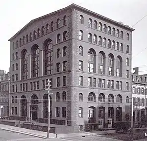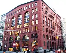 The De Vinne Press Building, located at 393-399 Lafayette Street at the corner of East 4th Street, in the NoHo district of lower Manhattan, New York City, is a brick structure, built in 1885-1886 and designed by the firm of Babb, Cook & Willard in Romanesque Revival style.[3] An addition was made to the building in 1892.[1]