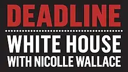 Deadline: White House is an American news and politics television program airing weekdays from 4 to 6 p.m. ET on MSNBC. It is hosted by NBC News senior political analyst Nicolle Wallace.[2]