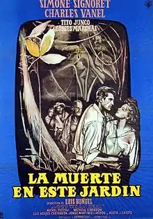 La mort en ce jardin ("Death in the Garden") is a 1956 adventure film by director Luis Buñuel, based on a novel by José-André Lacour, that stars Simone Signoret, Charles Vanel and Michel Piccoli, with additional dialogue by Raymond Queneau. Set in an unidentified South American country, it recounts the bloody suppression by the corrupt governing regime of an insurrection by illegal diamond miners, after which five disparate fugitives take to the jungle in search of safety.